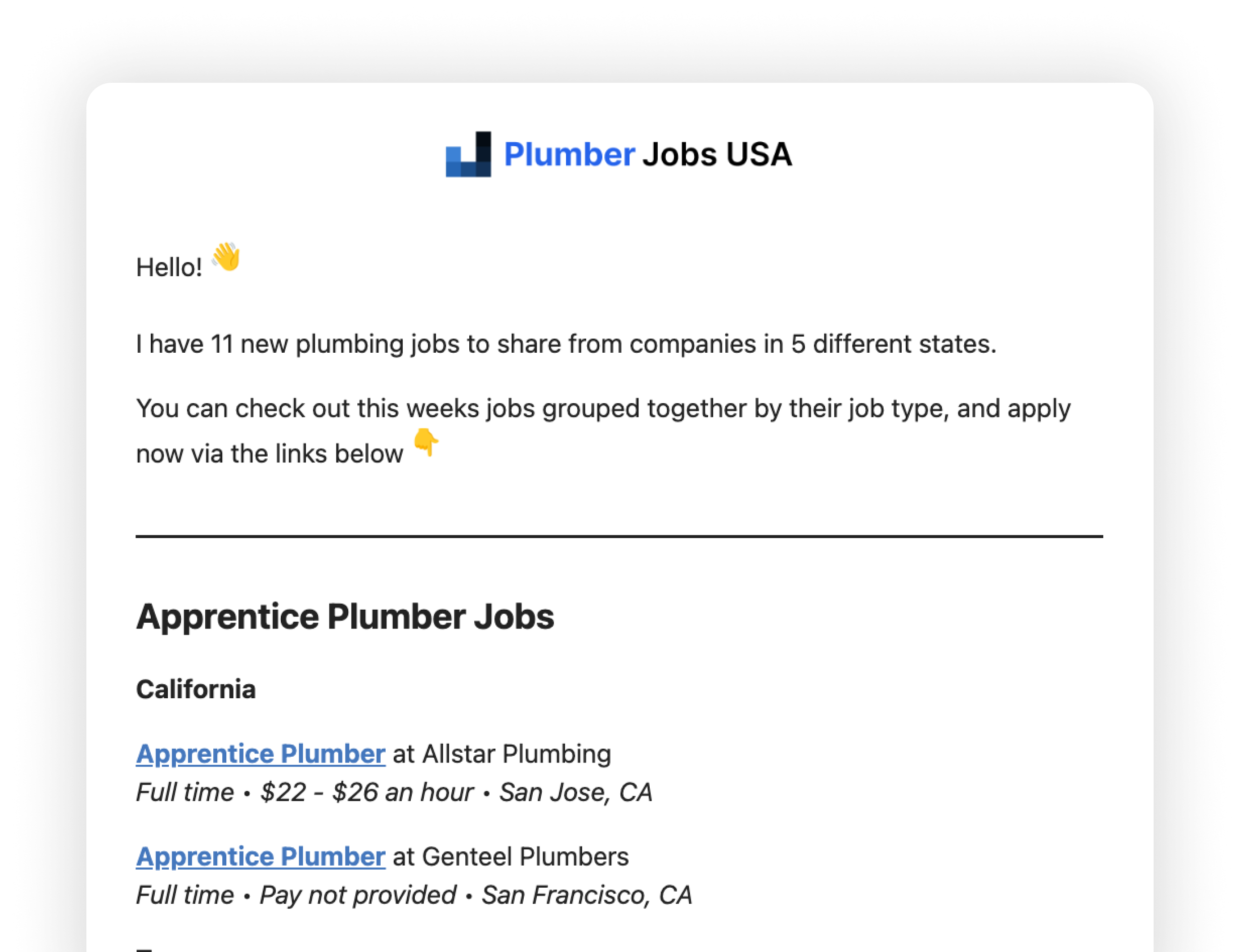 Each week we send out a newsletter containing the jobs posted that week to 1,200+ plumbers. We have a 61% open rate average.