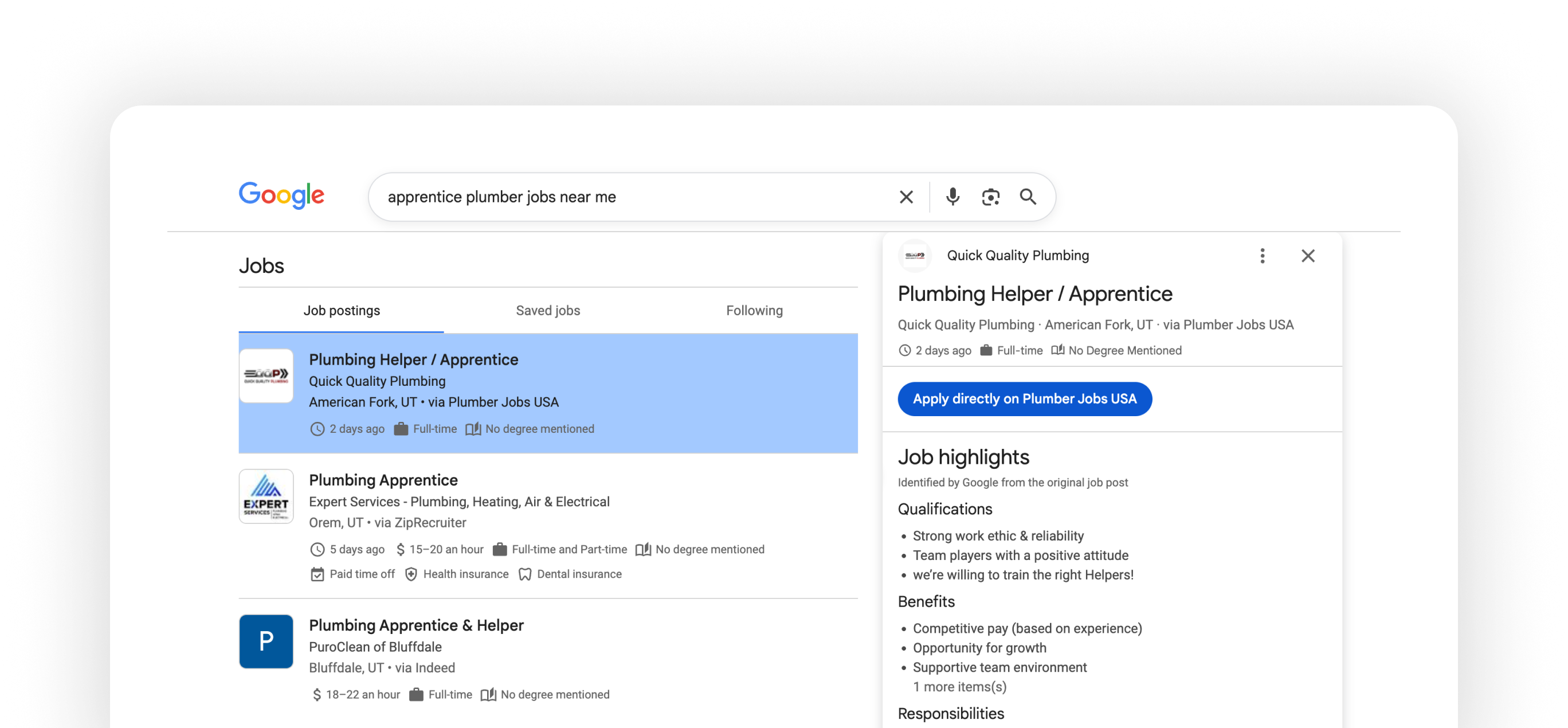 Every job you post is automatically distributed to Google’s job search network. When a plumber searches "plumbing jobs near me," your listing shows up. No extra steps, no extra cost.