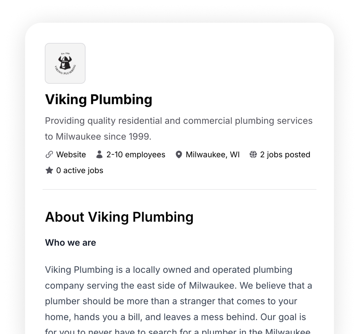 In addition to a job post, you can create your own company profile to help potential candidates learn more about your company. It’s also a centralized location for all of your jobs.